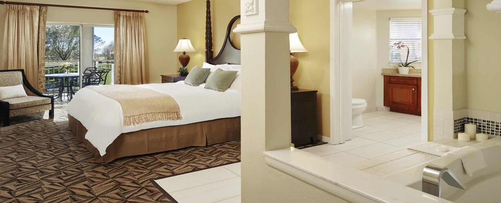 Bedroom and Tub at Hilton Grand Vacations Club at SeaWorld in Orlando, Florida